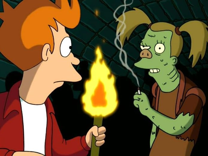 2 сезон 5 серия сериала «Футурама» начинается с неприятной ситуации. Все сотрудники экспресс-доставки в последнее время много внимания уделяют Зубастику. Такое поведение немного раздражает Бендера. Когда же Лила отдает приказ всем готовиться к празднованию дня рождения ее любимого животного, робот и вовсе начинает злиться. Ему хочется добиться справедливости, но, каким образом это сделать, неизвестно. Бендер все же берет себя в руки и решает испечь торт ко дню рождения Зубастика. Животное из другой планеты пробирается на кухню и все съедает. В итоге робот со злости кидает Зубастика в унитаз и смывает.