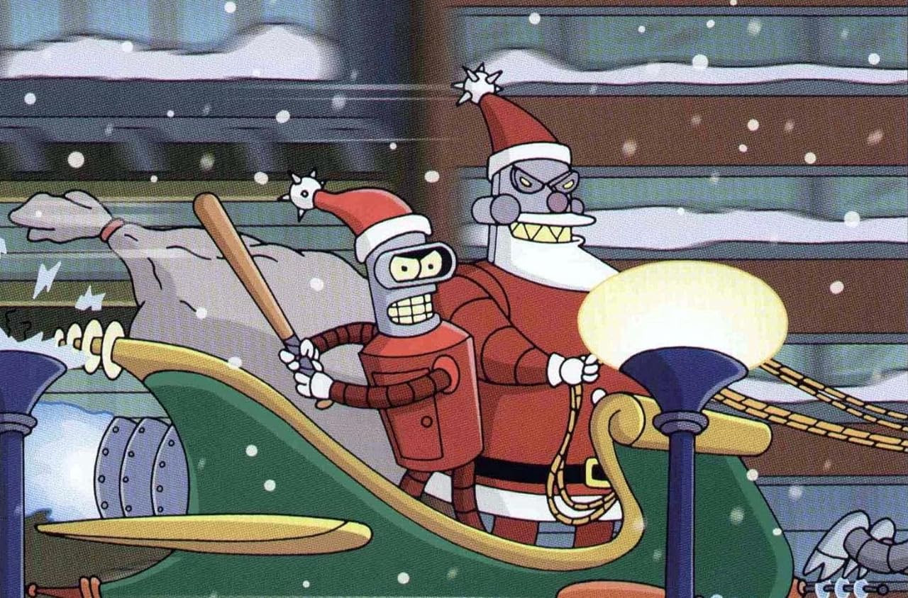 4 сезон 2 серия сериала «Футурама» разворачивается в канун Рождества. По телевизору выступает голова Уолтера Кронкайта с предупреждением для жителей всей страны. После наступления темноты может появиться известный Санта-робот и будет нападать на всех, кто случайно окажется на улице. Профессор Франсворт немного успокаивает сотрудников уникальной разработкой. Теперь здание оборудовано дорогостоящим бронированным корпусом и никто из посторонних в него не проберется. Также у него имеются и неприятные новости для сотрудников. На этот раз кораблю предстоит доставить посылку на планету Нептун к тому самому обезумевшему Санте. Понимая, что терять время напрасно не стоит, коллектив спешит отправиться в путешествие.