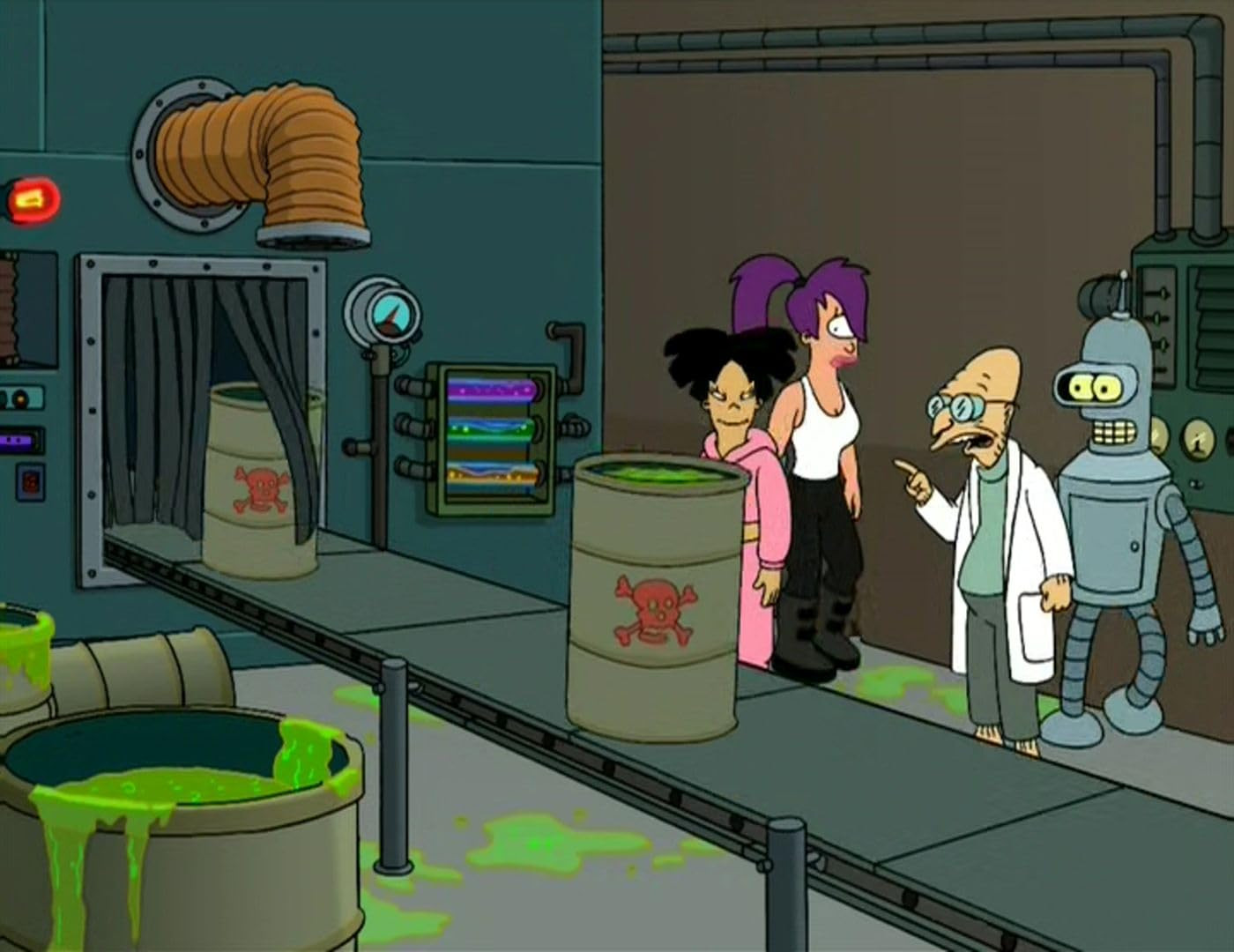 4 сезон 5 серия сериала «Футурама» покажет, как Гермес предъявляет профессору Фарнсворту претензии о загрязнении отходами окружающей среды. Он готов закрыть на происходящий хаос глаза за определенную сумму. Однако Бендер готов за меньшую стоимость избавиться от отходов иным способом. Профессор принимает предложение Бендера. На следующий день робот все отходы отправляет в канализацию. Его глупость сильно засоряет канализацию. Недовольные мутанты устраивают разборки. Попытки Лилы и Фрая заступиться за приятеля завершаются поражением. Троицу утаскивают в канализацию, где после рассчитывают с ними поквитаться.